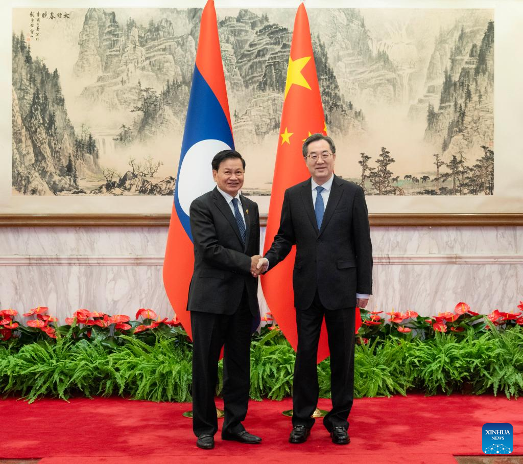 In the meeting with Thongloun, Ding, also a member of the Standing Committee of the Political Bureau of the Communist Party of China Central Committee, said China is willing to work with Laos to enhance political mutual trust, deepen practical cooperation, strengthen multilateral collaboration and advance the development of the China-Laos community with a shared future to a high-standard, high-quality and high-level stage.