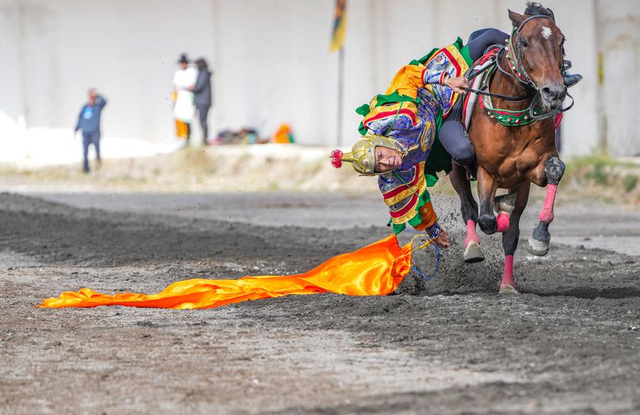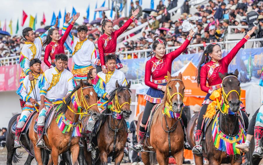 NAGQU, Sept. 5 (Xinhua) -- The 2025 edition of a traditional horse racing festival kicked off in Nagqu on Friday. The three-day festival held on the northern Qinghai-Tibet Plateau features sports competitions, art performances, and cultural tourism activities, drawing large crowds of locals and visitors.