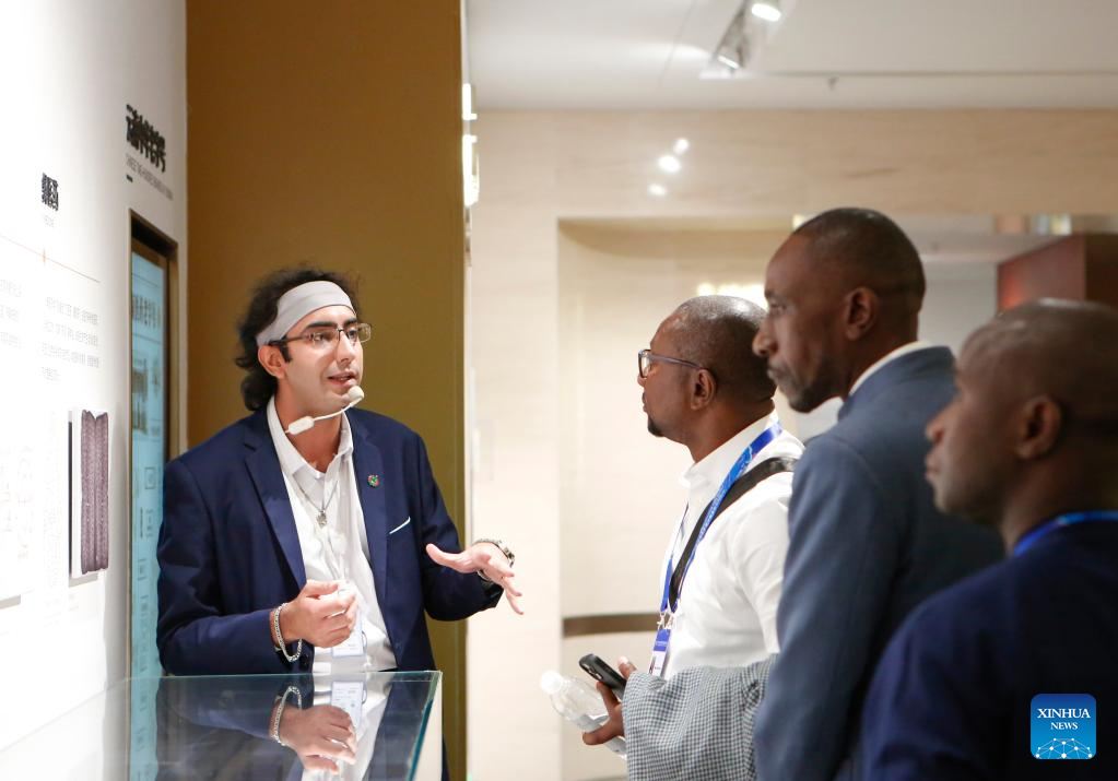 A guest to the 2025 Global South Media and Think Tank Forum visits Yunnan Baiyao Museum in Kunming, southwest China's Yunnan Province, Sept. 7, 2025. The 2025 Global South Media and Think Tank Forum opened Saturday in Kunming, capital of Yunnan. Guests toured different places in Yunnan on Sunday. (Xinhua/Chen Wei)