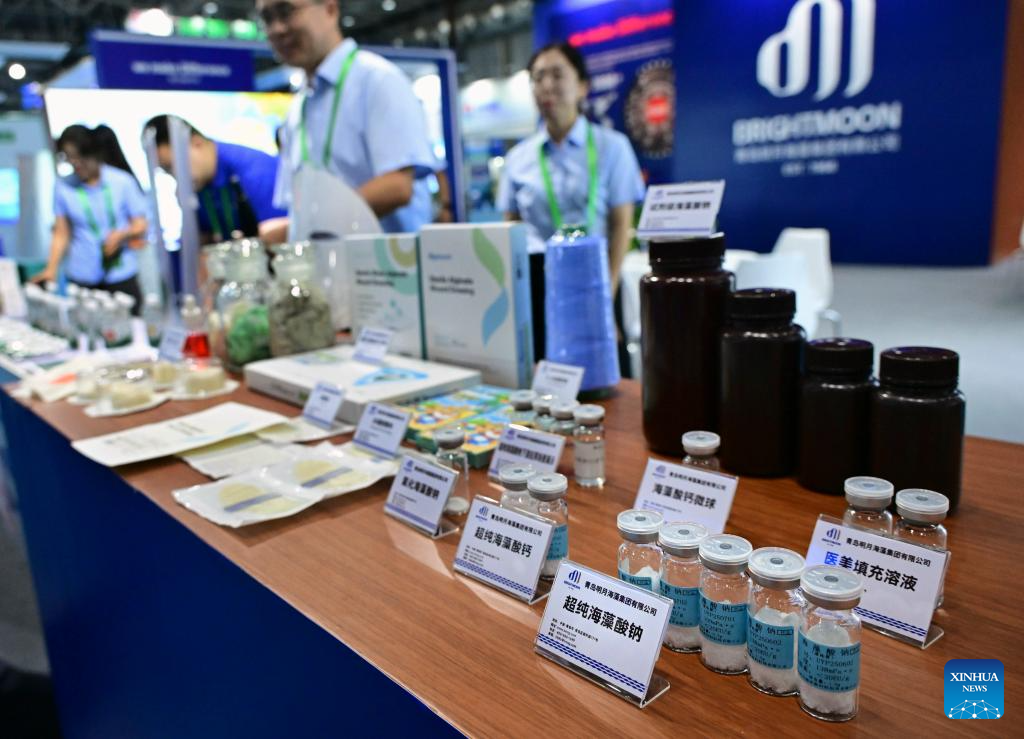 This photo taken on Sept. 8, 2025 shows the site of 2025 East Asia Marine Expo in Qingdao, east China's Shandong Province. Over 450 enterprises and institutions participated in the Expo. (Xinhua/Li Ziheng)