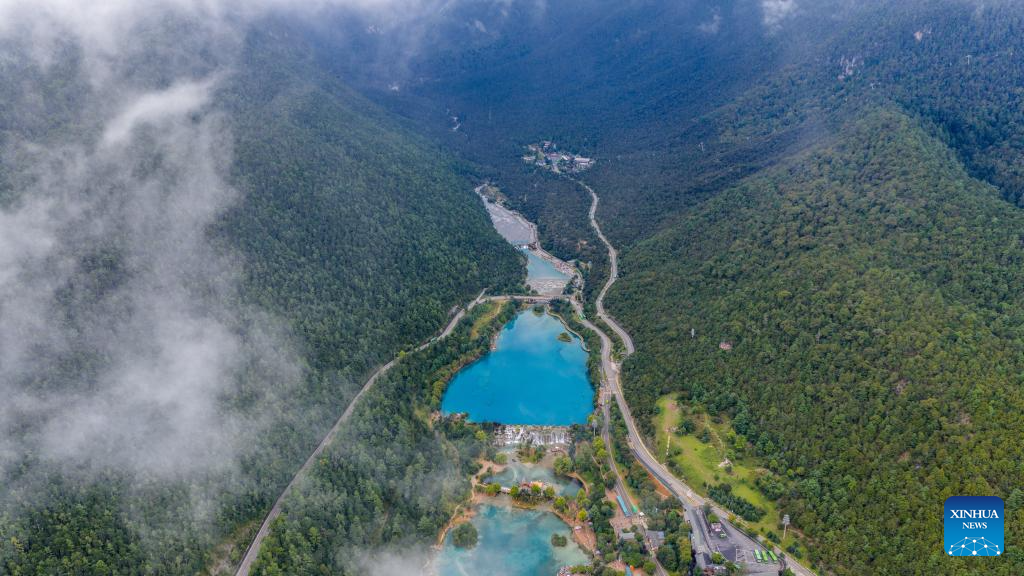 An aerial drone photo taken on Sept. 8, 2025 shows the scenery of Lanyue (Blue Moon) Valley in Lijiang City, southwest China's Yunnan Province. (Xinhua/Hu Chao)