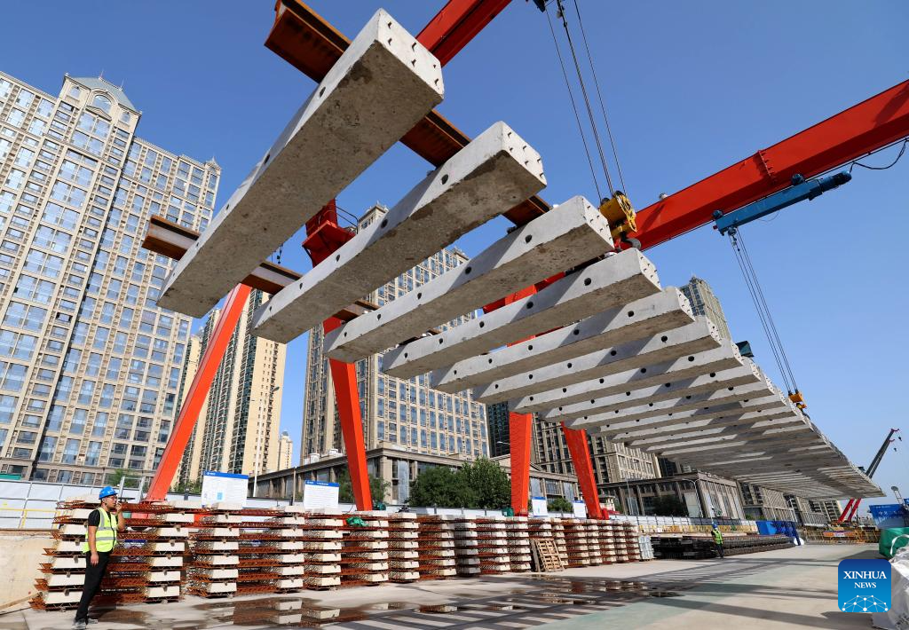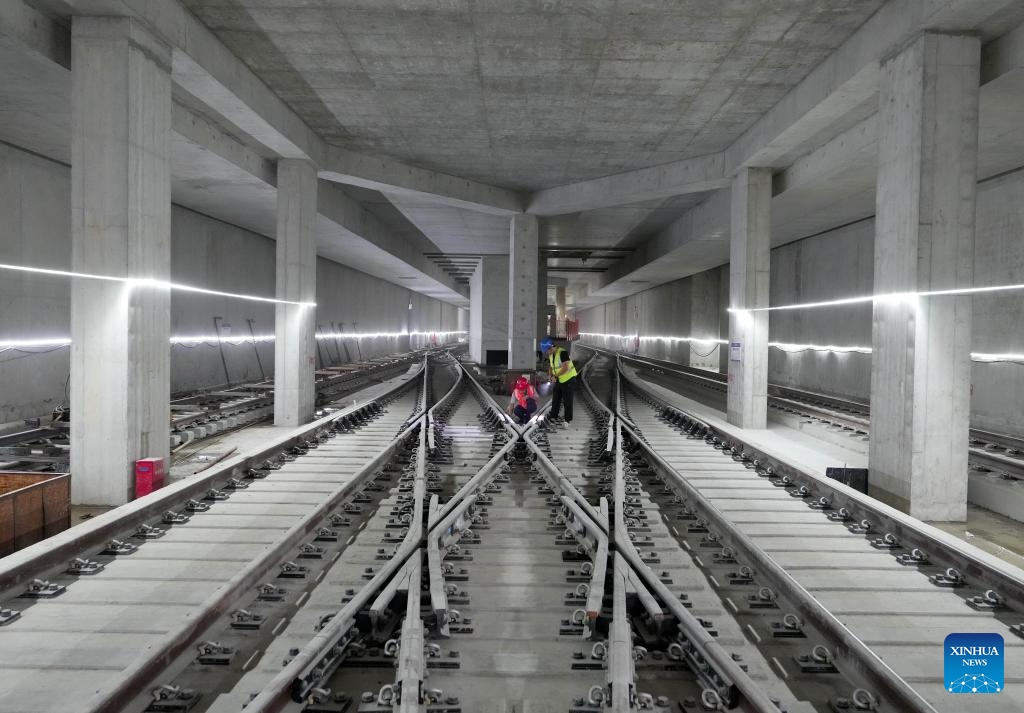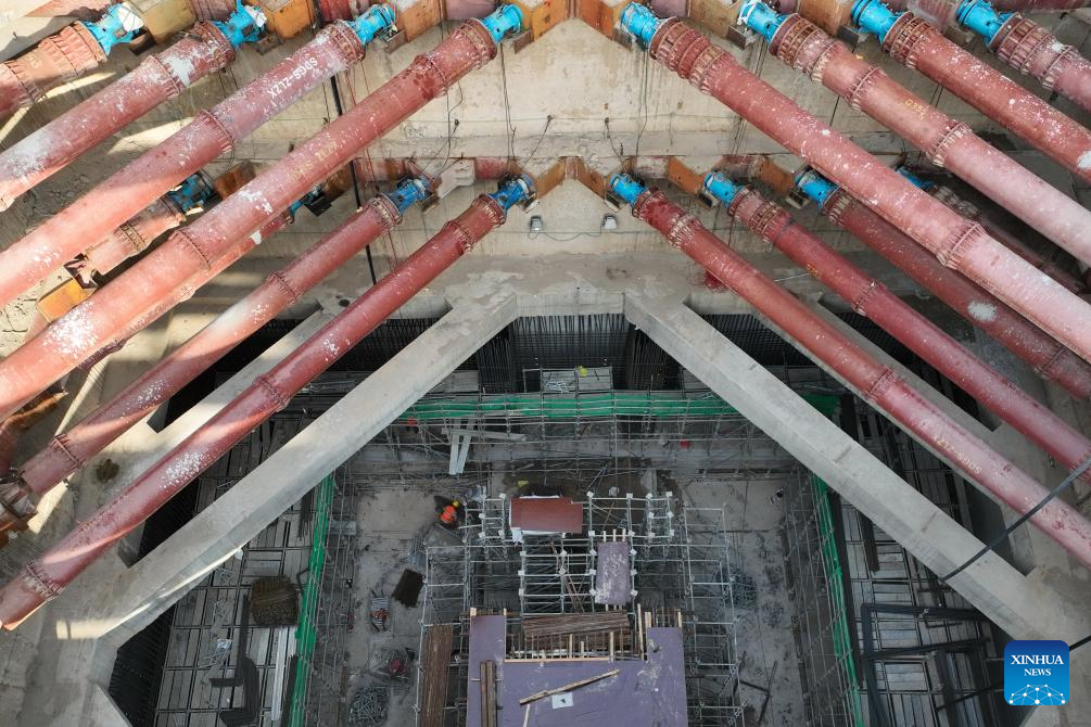 Constructors work at the construction site of a metro station in Shijiazhuang, north China's Hebei Province, Sept. 7, 2025. As of the first half of 2025, the Shijiazhuang Metro has operated a total of 2.0083 million train trips, safely transporting 942 million passengers. Initiated in June 2017, the city's metro system now stretches 78.2 kilometers with 60 stations in service. (Xinhua/Yang Shiyao)