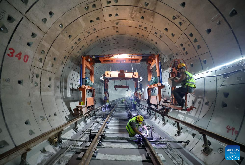 Constructors work at the construction site of a metro station in Shijiazhuang, north China's Hebei Province, Sept. 9, 2025. As of the first half of 2025, the Shijiazhuang Metro has operated a total of 2.0083 million train trips, safely transporting 942 million passengers. Initiated in June 2017, the city's metro system now stretches 78.2 kilometers with 60 stations in service. (Xinhua/Yang Shiyao)