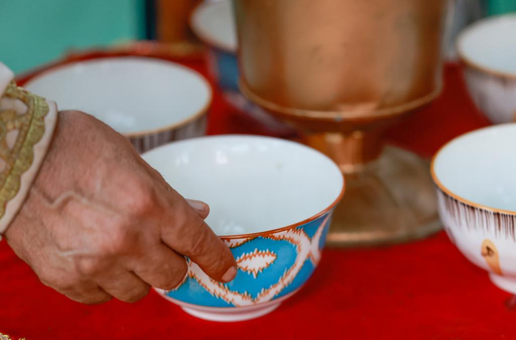 Parhat Emin arranges bowls for performing the Samawar dance in the Qiuci Alley of Kuqa City, northwest China's Xinjiang Uygur Autonomous Region, July 22, 2025. In the Qiuci Alley of Kuqa City, northwest China's Xinjiang Uygur Autonomous Region, Parhat Emin performs the Samawar (a Uygur term meaning "tea set") dance, a traditional Uygur greeting dance with a history dating back to the millennium-old ancient Qiuci State. His eyes shine brightly, and his smile is warm and welcoming. With a bronze pot and porcelain bowls balanced steadily on a plate over his head, his body spins smoothly, and his feet move as lightly as the wind. As he dances gracefully to the rhythm of traditional Uygur music, the surrounding audience burst into cheers from time to time. (Xinhua/Wang Fei)