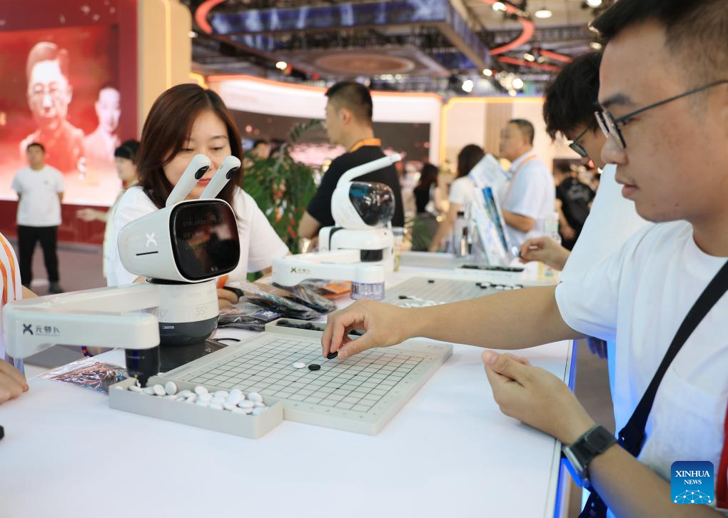 A visitor competes with a robot in a Go game, known as Weiqi in Chinese, at the 2025 China International Fair for Trade in Services (CIFTIS) in Beijing, capital of China, Sept. 11, 2025. The 2025 CIFTIS opened in Beijing on Wednesday, themed "Embrace Intelligent Technologies, Empower Trade in Services." (Xinhua/Zhang Chenlin)