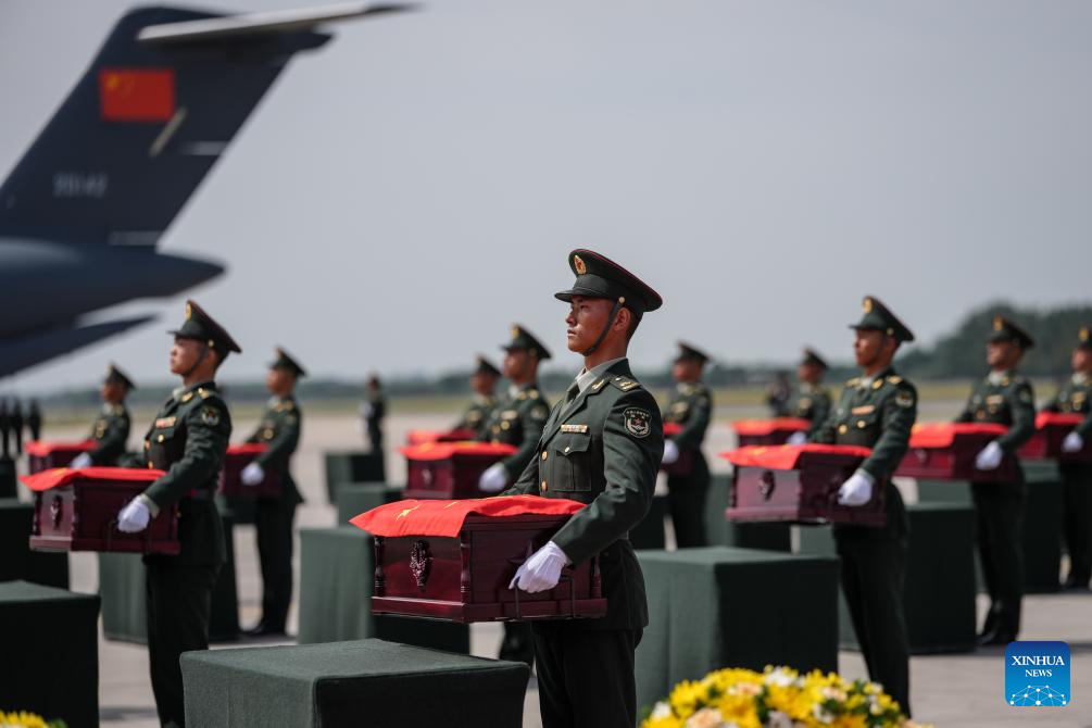 SHENYANG, Sept. 12 (Xinhua) -- The remains of 30 Chinese People's Volunteers (CPV) soldiers who lost their lives during the War to Resist U.S. Aggression and Aid Korea were returned to China on Friday from the Republic of Korea (ROK).