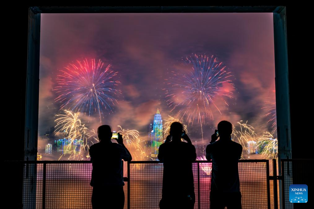 People view fireworks during the opening ceremony of the 2025 Yangtze River cultural and arts season in Wuhan, central China's Hubei Province, Sept. 12, 2025. The opening ceremony of the 2025 Yangtze River cultural and arts season was held in Wuhan on Friday. The event will run from Sept. 12 to Oct. 30, featuring a range of activities including art exhibitions, film week, and music week. (Xinhua/Wu Zhizun)