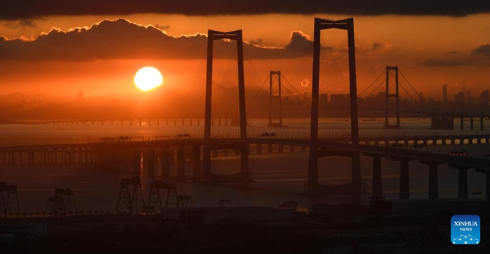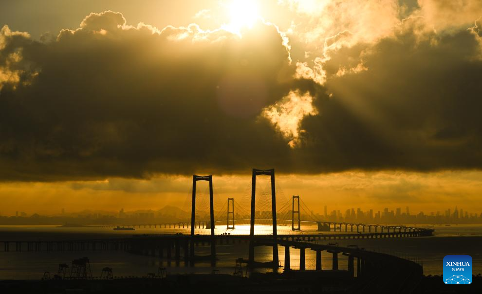Scenery of Shenzhen-Zhongshan link at sunrise in south China's Guangdong