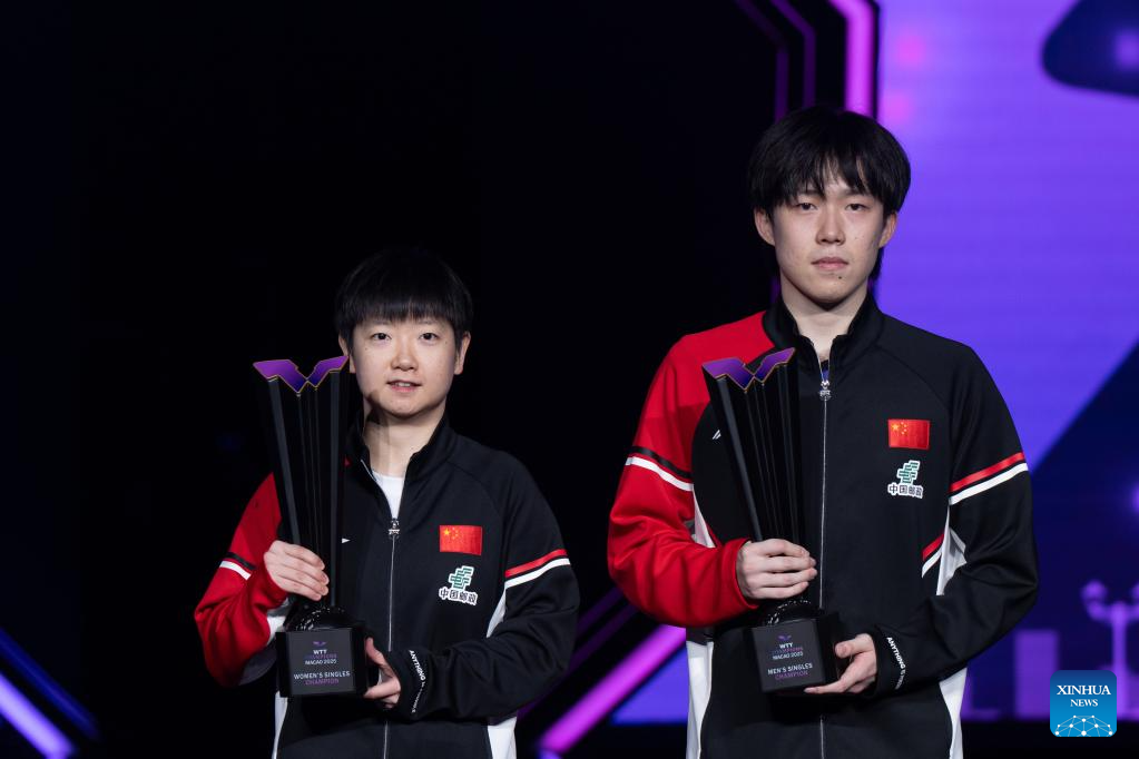 MACAO, Sept. 14 (Xinhua) -- China's Sun Yingsha and Wang Chuqin clinched the singles titles at the World Table Tennis (WTT) Champions Macao 2025 on Sunday.