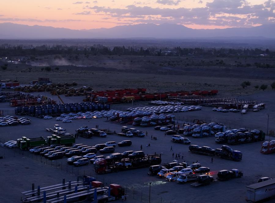 HORGOS, China, Sept. 15 (Xinhua) -- A few kilometers away from the road port of Horgos in northwest China's Xinjiang Uygur Autonomous Region, alongside the Lianyungang-Horgos Expressway, rows of vehicles can be seen neatly parked, awaiting export. Many of them will be driven out of the country by individual car drivers through a process known as "self-driving export."