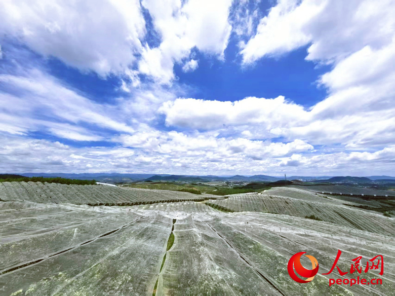 Photo shows hail nets at the country's largest apple orchard applying dwarf rootstocks for denser planting in Zhaotong city, southwest China's Yunnan Province. (People's Daily Online/Sun Haifeng)