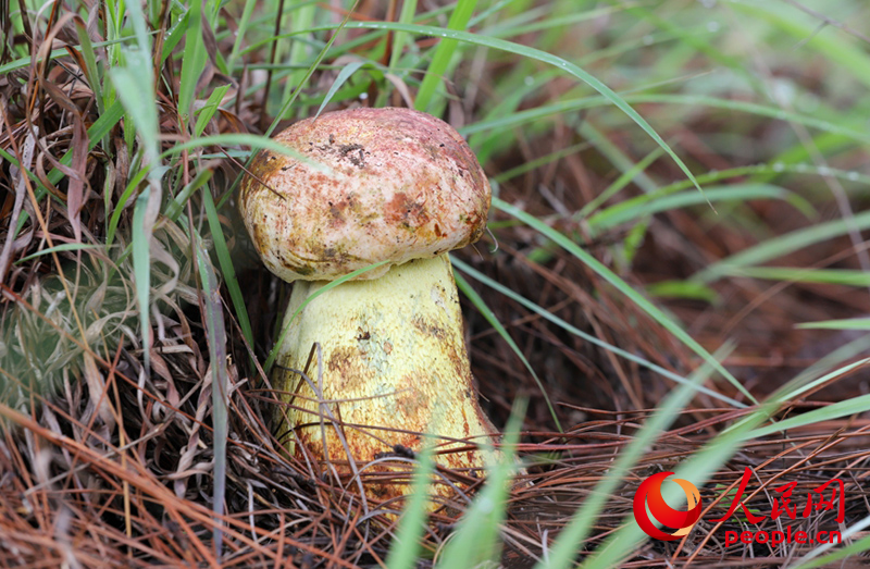 Photo shows a wild mushroom in Nanhua county, Chuxiong Yi Autonomous Prefecture, southwest China's Yunnan Province. (People's Daily Online/Hu Zunhui)