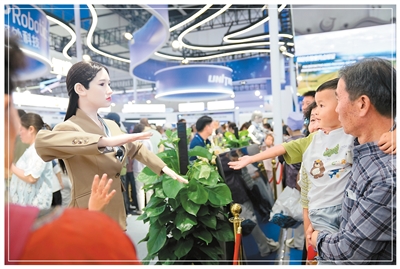 The AI exhibition featured 31 companies, including Huawei, ZTE and Tencent Cloud, showcasing computing infrastructure, large language models, robotic arms and brain-computer interface medical technologies. The innovations demonstrated applications in smart city management, agriculture, health care and cultural tourism.