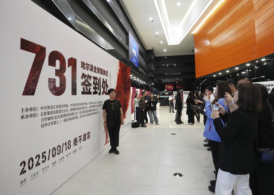 This photo taken on Sept. 17, 2025 shows the world premiere of the film "Evil Unbound" in Harbin, northeast China's Heilongjiang Province. (Xinhua/Zhang Tao)