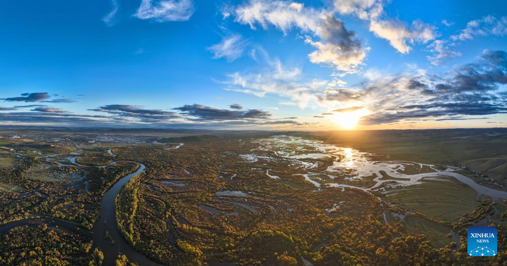 A panoramic aerial drone photo taken on Sept. 16, 2025 shows a view of the Ergune Wetland Nature Reserve in Hulun Buir, north China's Inner Mongolia Autonomous Region. (Xinhua/Bei He)