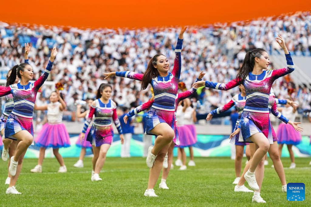 Artists perform during the opening ceremony of the 2025 FISU University World Cup Football held in Suoyuwan Stadium in Dalian, northeast China's Liaoning Province, Sept. 17, 2025. (Xinhua/Zheng Huansong)