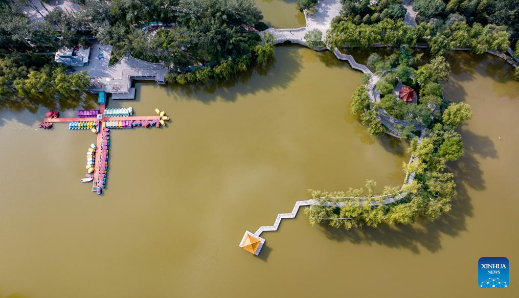 An aerial drone photo taken on Sept. 17, 2025 shows a view of Zhongshan Park in Yinchuan, northwest China's Ningxia Hui Autonomous Region.
