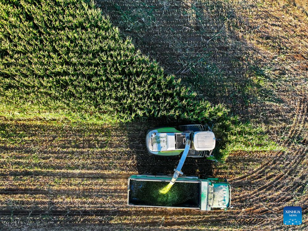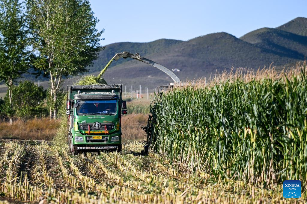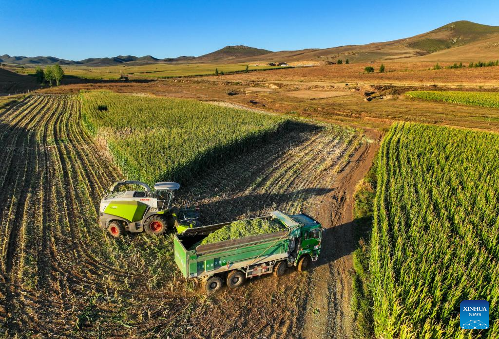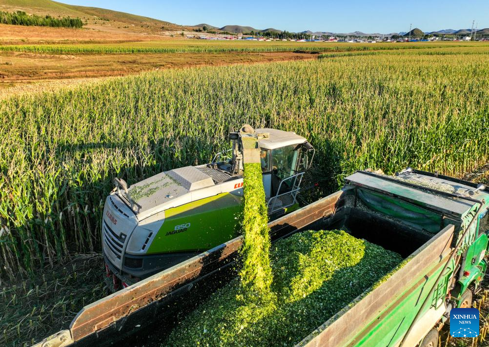 People work at a corn field in Jurihe Town, Jarud Banner, Tongliao City, north China's Inner Mongolia Autonomous Region, Sept. 18, 2025. (Xinhua/Lian Zhen)