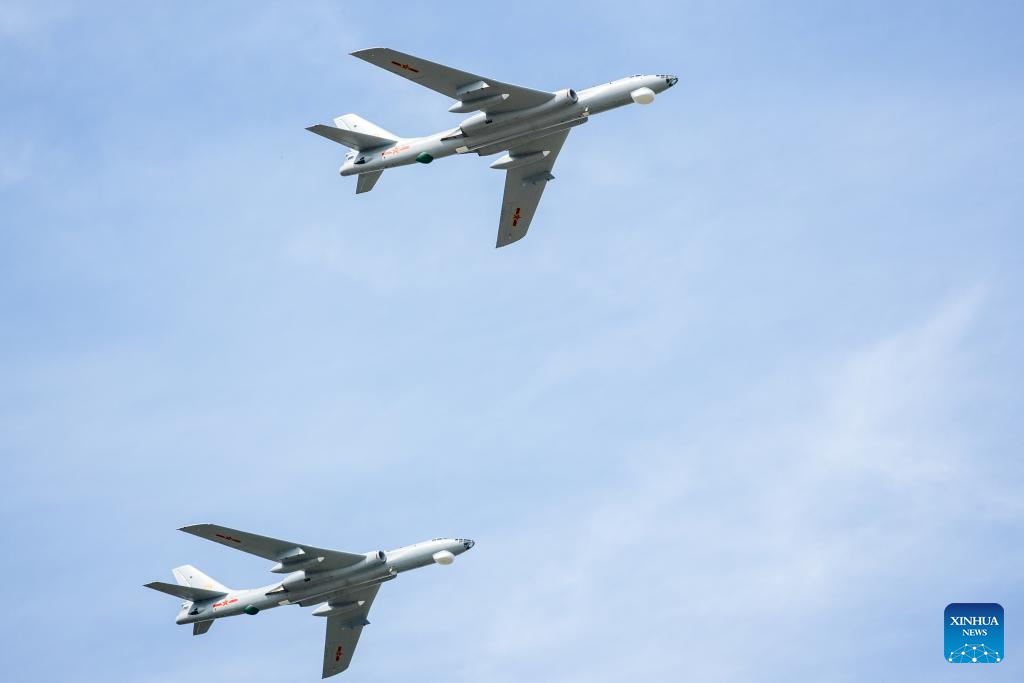 H-6 bomber jets are pictured during the 2025 aviation open-day activities of the Chinese People's Liberation Army Air Force and Changchun Air Show in Changchun, northeast China's Jilin Province, Sept. 19, 2025. The events kicked off here on Friday. (Xinhua/Zhang Nan)