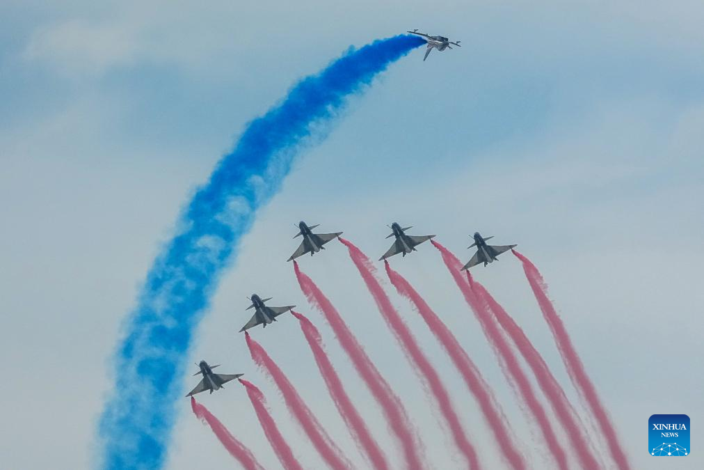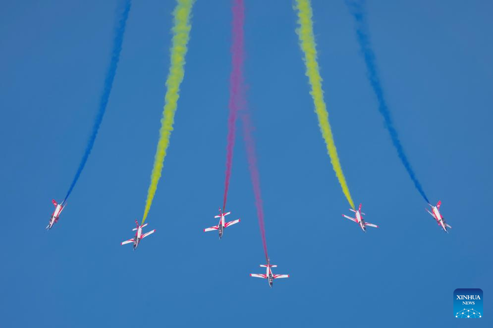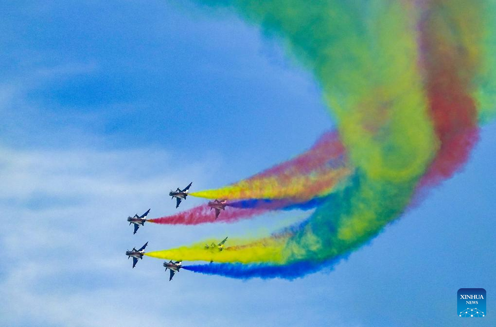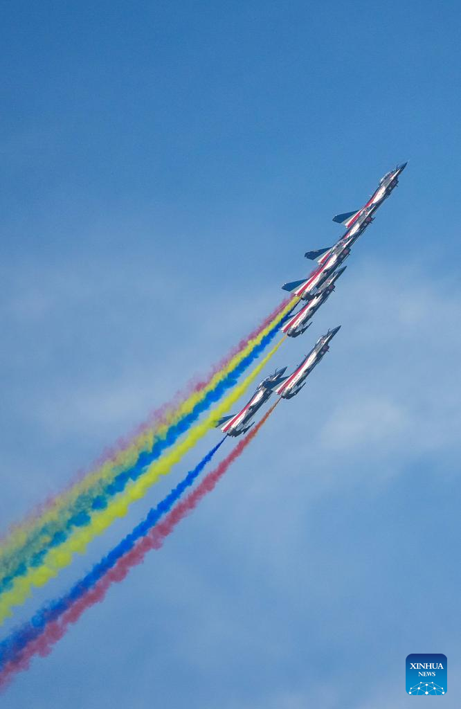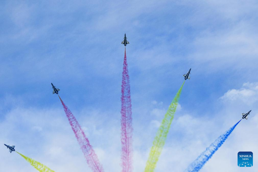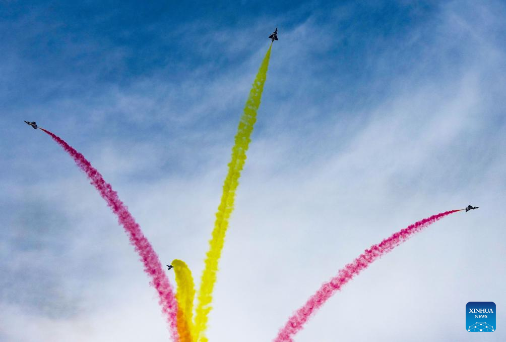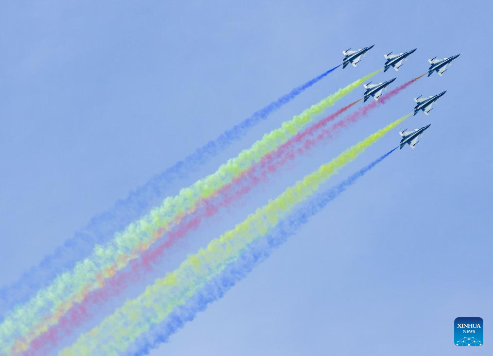 Aircraft of the Bayi Aerobatic Team of the Chinese People's Liberation Army Air Force perform during the 2025 aviation open-day activities of the Chinese People's Liberation Army Air Force and Changchun Air Show in Changchun, northeast China's Jilin Province, Sept. 19, 2025. The events kicked off here on Friday. (Xinhua/Zhang Nan)