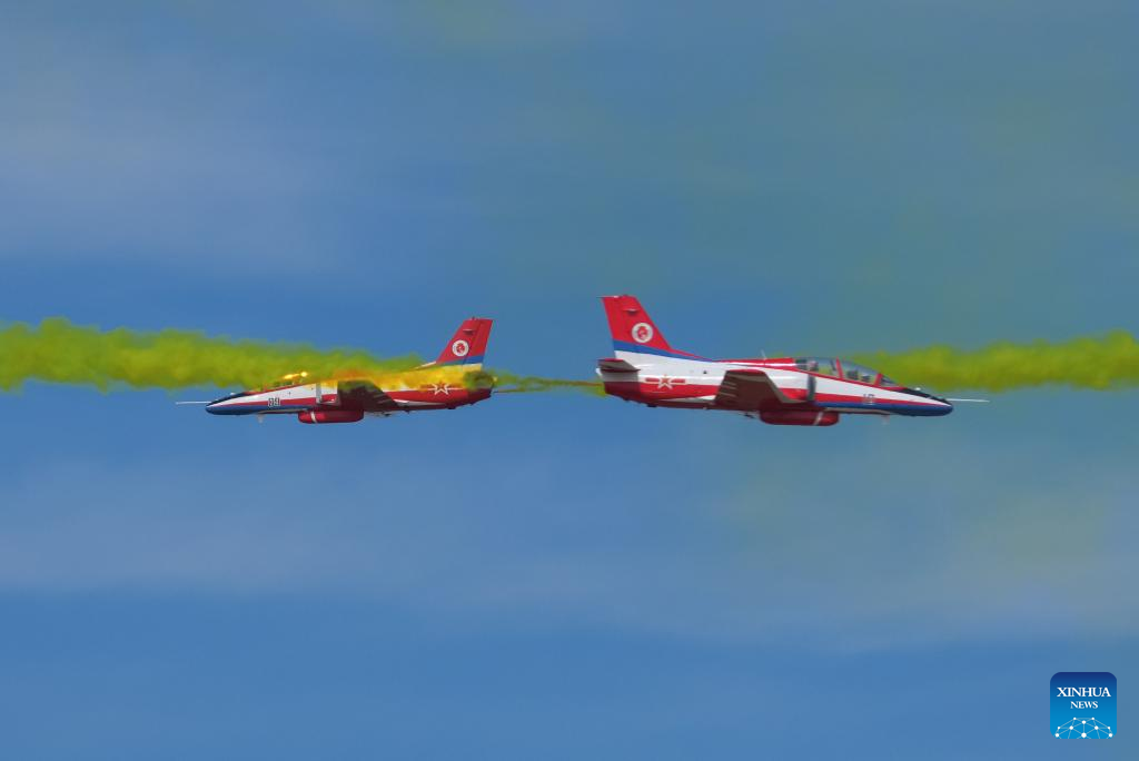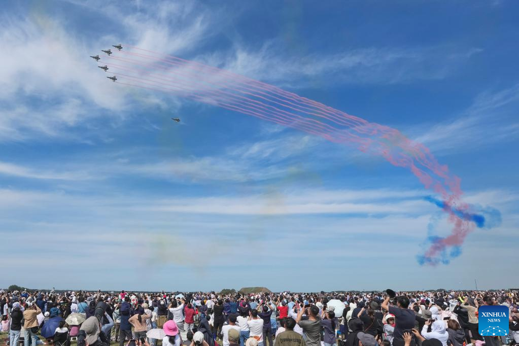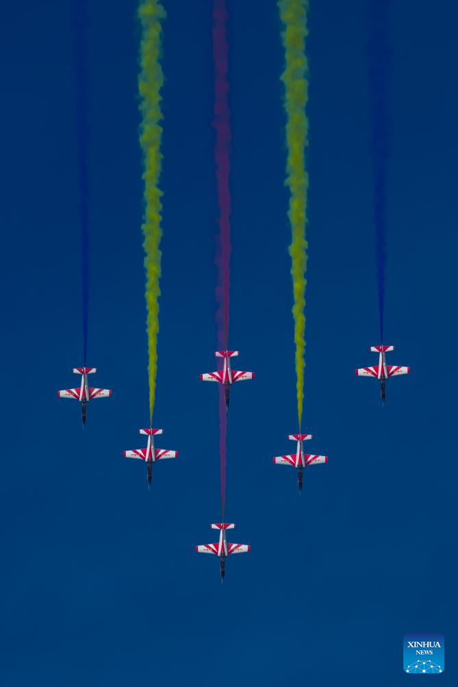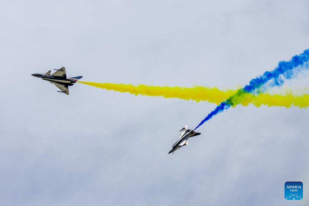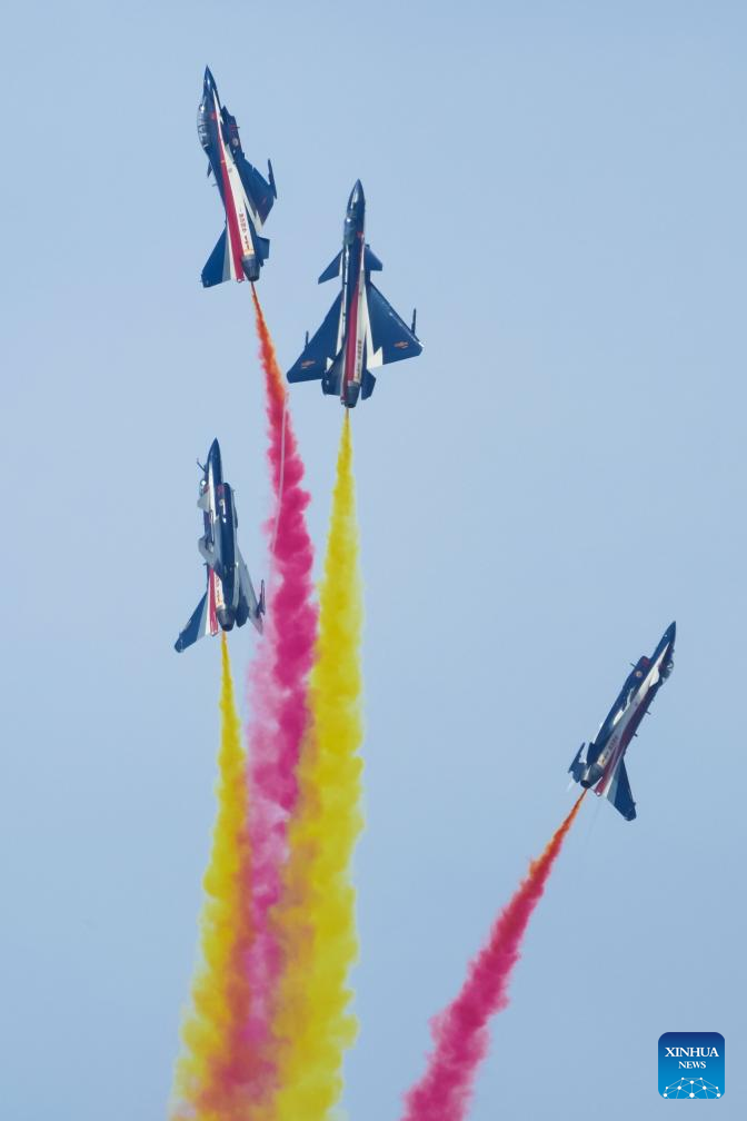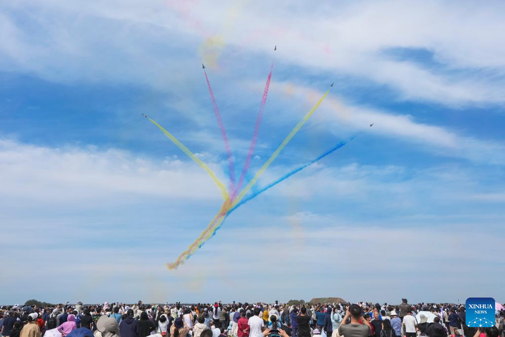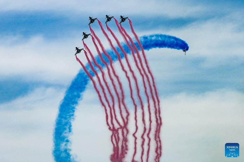 Aircraft of the Bayi Aerobatic Team of the Chinese People's Liberation Army Air Force perform during the 2025 aviation open-day activities of the Chinese People's Liberation Army Air Force and Changchun Air Show in Changchun, northeast China's Jilin Province, Sept. 19, 2025. The events kicked off here on Friday. (Xinhua/Zhang Nan)