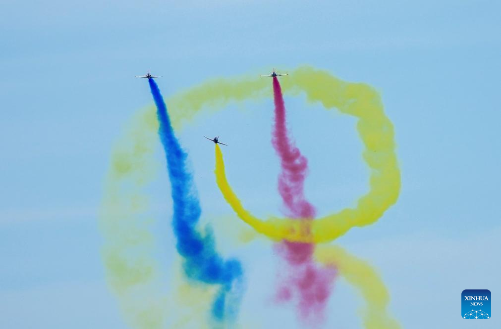 CHANGCHUN, Sept. 19 (Xinhua) -- The 2025 aviation open-day activities of the Chinese People's Liberation Army (PLA) Air Force and the Changchun Air Show began on Friday in Changchun, northeast China, showcasing the air force's latest development achievements through dynamic aerial performances and static exhibitions.