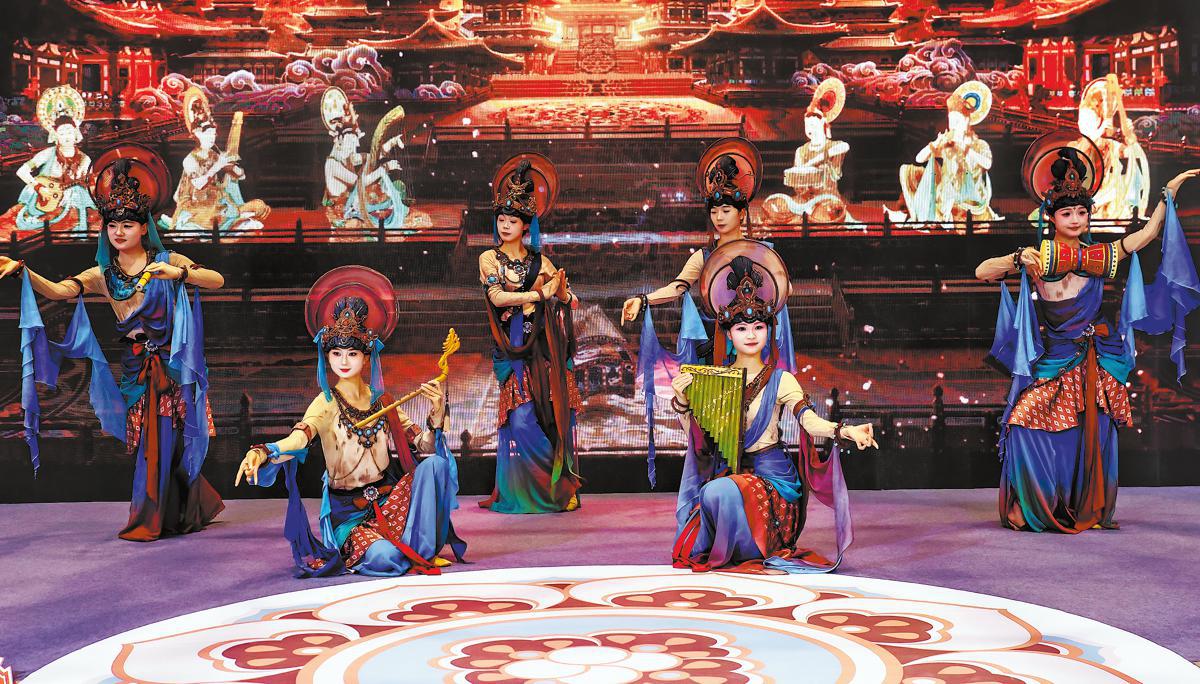 A dance performance in progress during the 8th Silk Road (Dunhuang) International Cultural Expo on Sunday in Dunhuang, Gansu province. [Photo provided to CHINA DAILY]