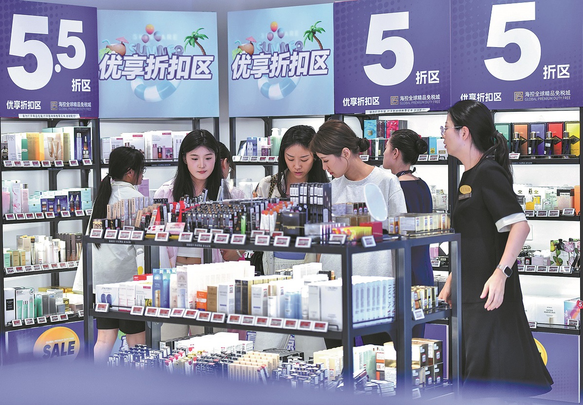 Shoppers browse goods at a duty-free shop in Haikou, Hainan province. LUO YUNFEI/CHINA NEWS SERVICE