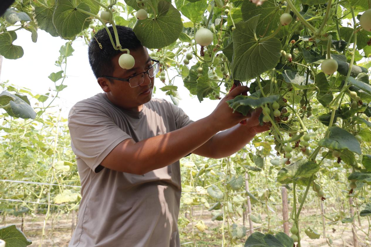 35-year-old Hao Hongle was the first college graduate from his village to return home and start a business. This year, he has planted nearly six mu of gourds, with sales expected to reach around 600,000 yuan.