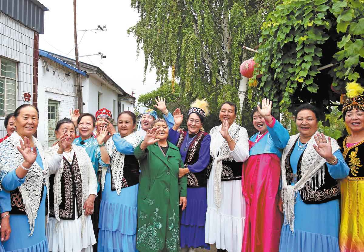 Elderly people from different ethnic groups pose for a group photo at the Hu'erjia Cultural Compound in Altay, Xinjiang Uygur autonomous region, on Sept 9. The compound is a significant cultural and historical site that embodies multicultural integration and ethnic harmony in Xinjiang. CHENG LI/XINHUA