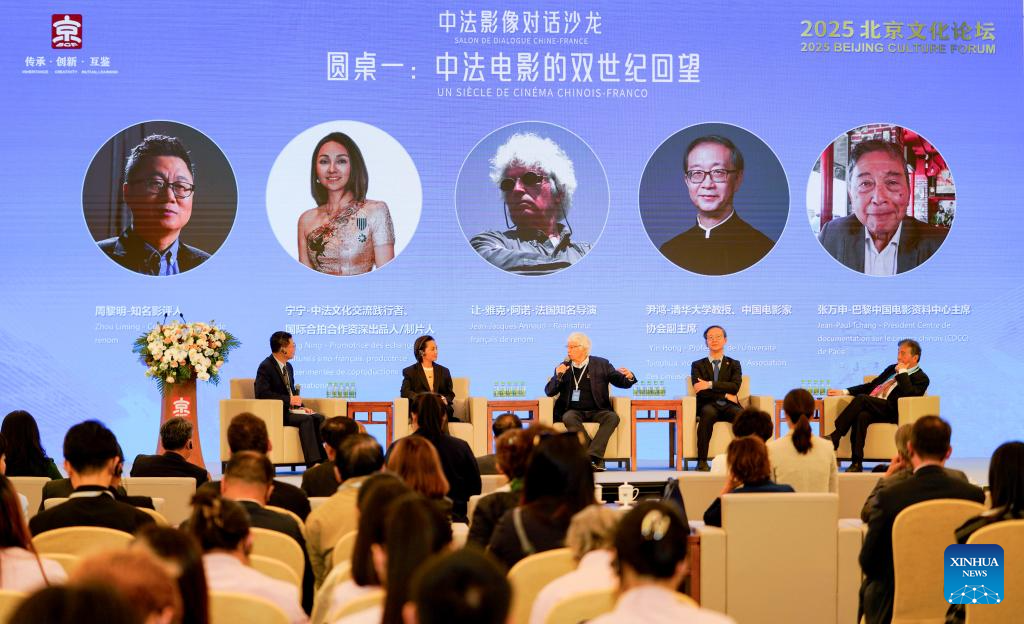 This photo taken on Sept. 24, 2025 shows a scene during the "Sino-French Audiovisual Dialogue Salon" of the "Wind in Motion: Sino-French Audiovisual Dialogue" series events held as part of the Beijing Culture Forum in Beijing, capital of China. (Xinhua/Xiao Xiao)