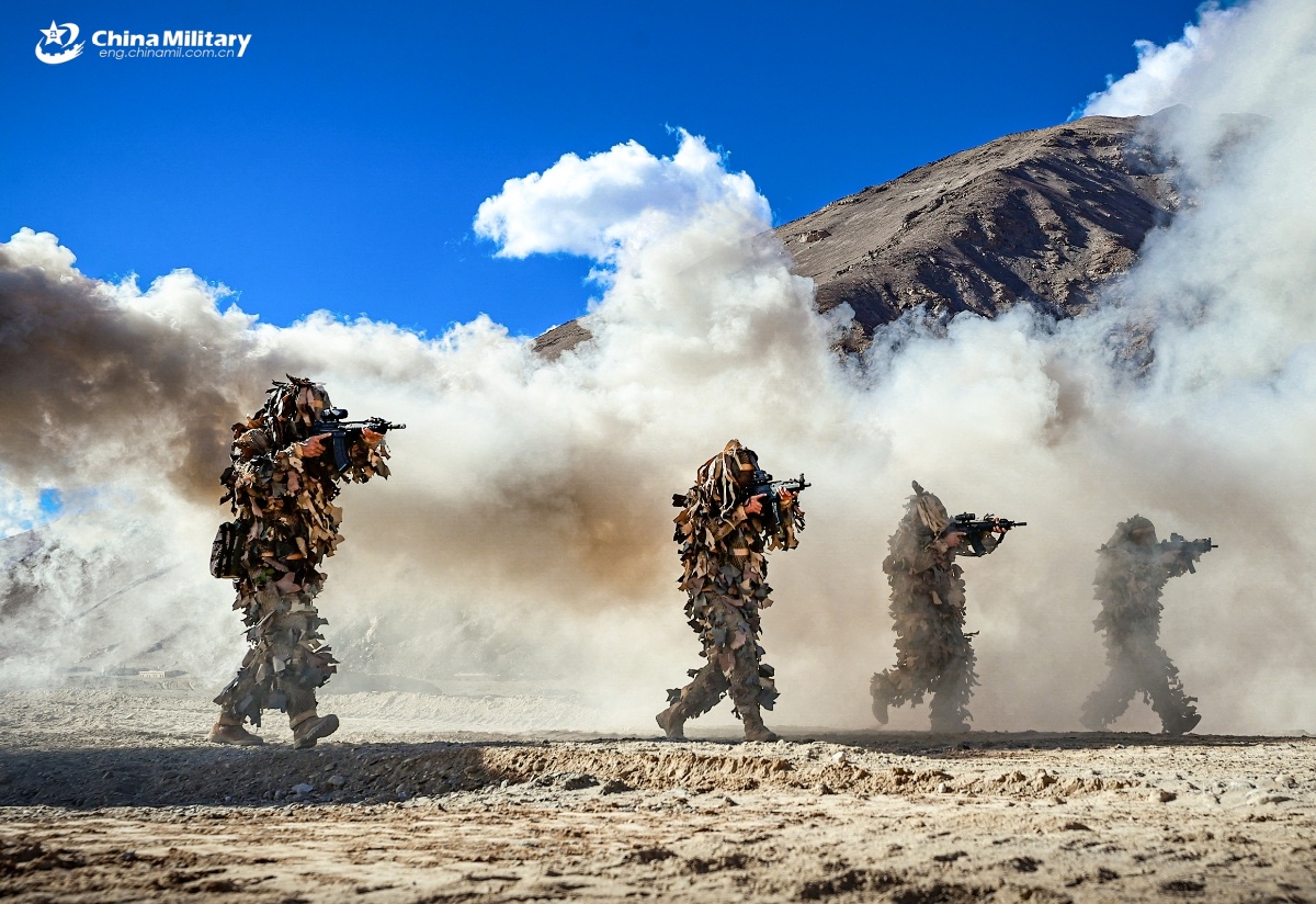 Soldiers assigned to a regiment under the Chinese PLA Xinjiang Military Command provide suppressive fire at the "enemy" target during a barrier-breaching training exercise on September 17, 2025. (eng.chinamil.com.cn/Photo by Wu Weiheng)