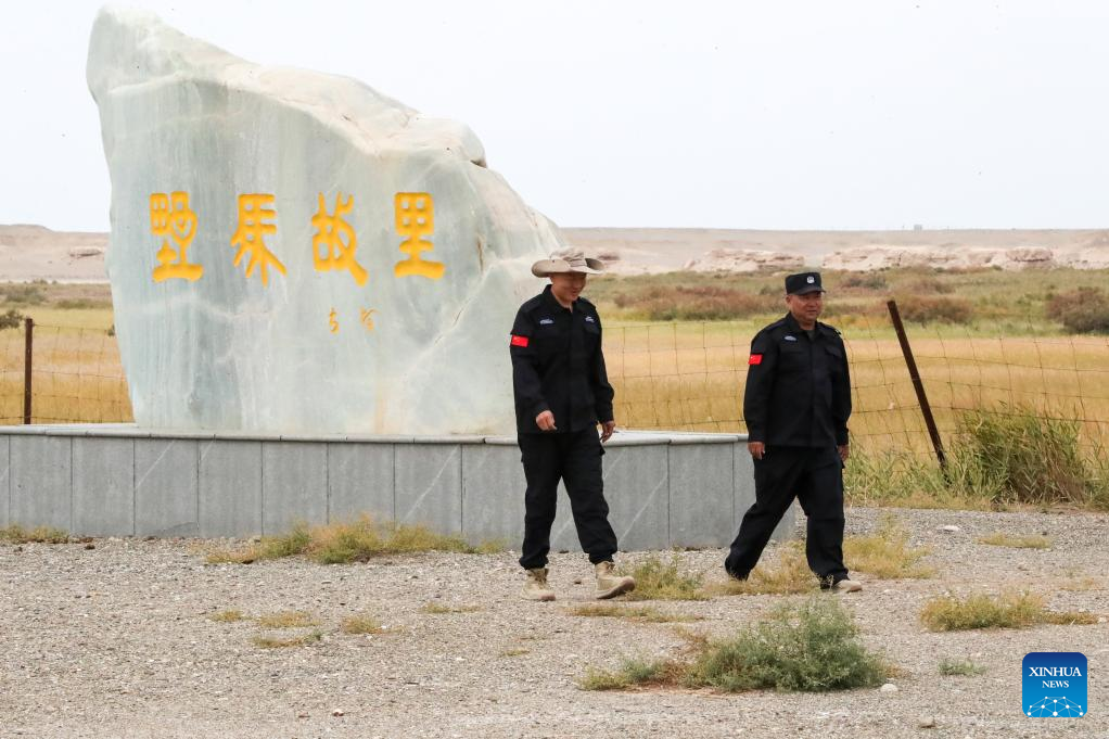 Staff members check the daily life of Przewalski's horses in the Dunhuang West Lake National Nature Reserve in Dunhuang, northwest China's Gansu Province, on Sept. 24, 2025. The Dunhuang West Lake National Nature Reserve in Gansu Province covers an area of approximately 660,000 hectares, featuring a diverse ecosystem including wetlands, grasslands, forests and Gobi deserts, which makes it an experimental zone for the wild release of the Przewalski's horses. (Xinhua/Lang Bingbing)