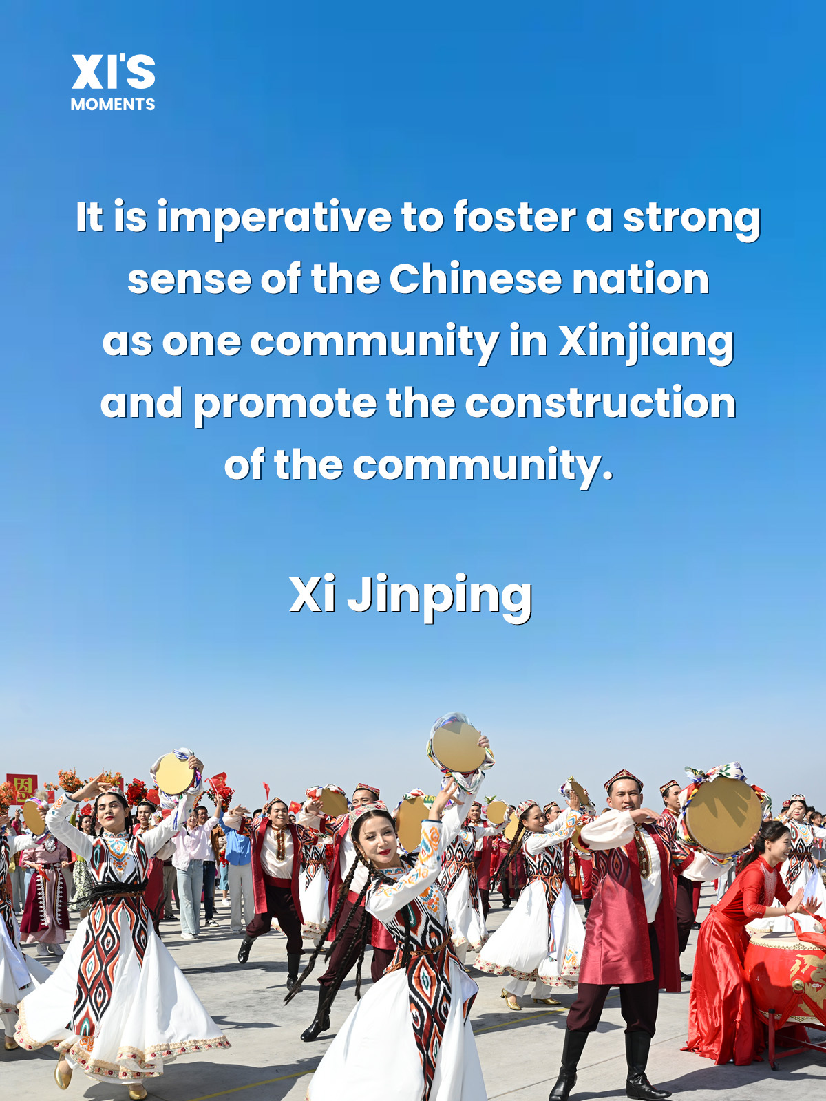President Xi Jinping stressed on Wednesday the importance of advancing ethnic unity and pursuing high-quality development in the Xinjiang Uygur antonomous region as it moves toward a modern, harmonious, and prosperous future.