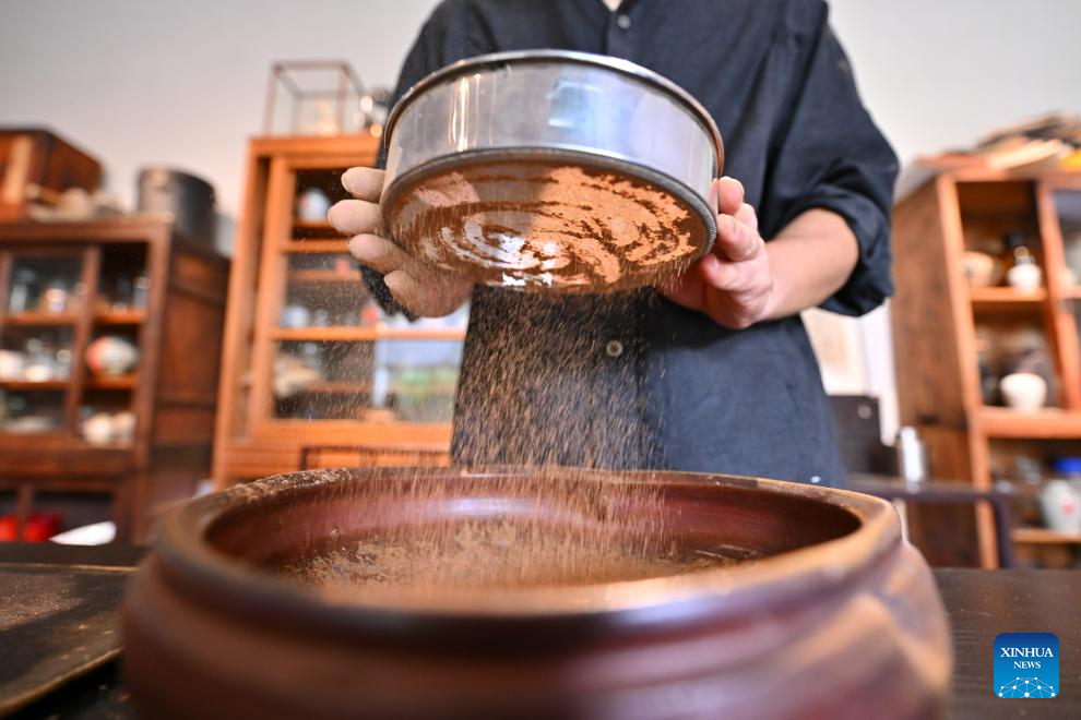 Chen Bin, an incense-making artisan, makes natural incense by hand in Xianyou County, southeast China's Fujian Province, on Sept. 24, 2025. Xianyou County is a significant trading and distribution center for agarwood and sandalwood in China. In recent years, the county has been working on the development of its incense-related business by leveraging the abundance in raw materials, a mature incense-making industrial chain, and online and offline sales networks there. (Xinhua/Jiang Kehong)