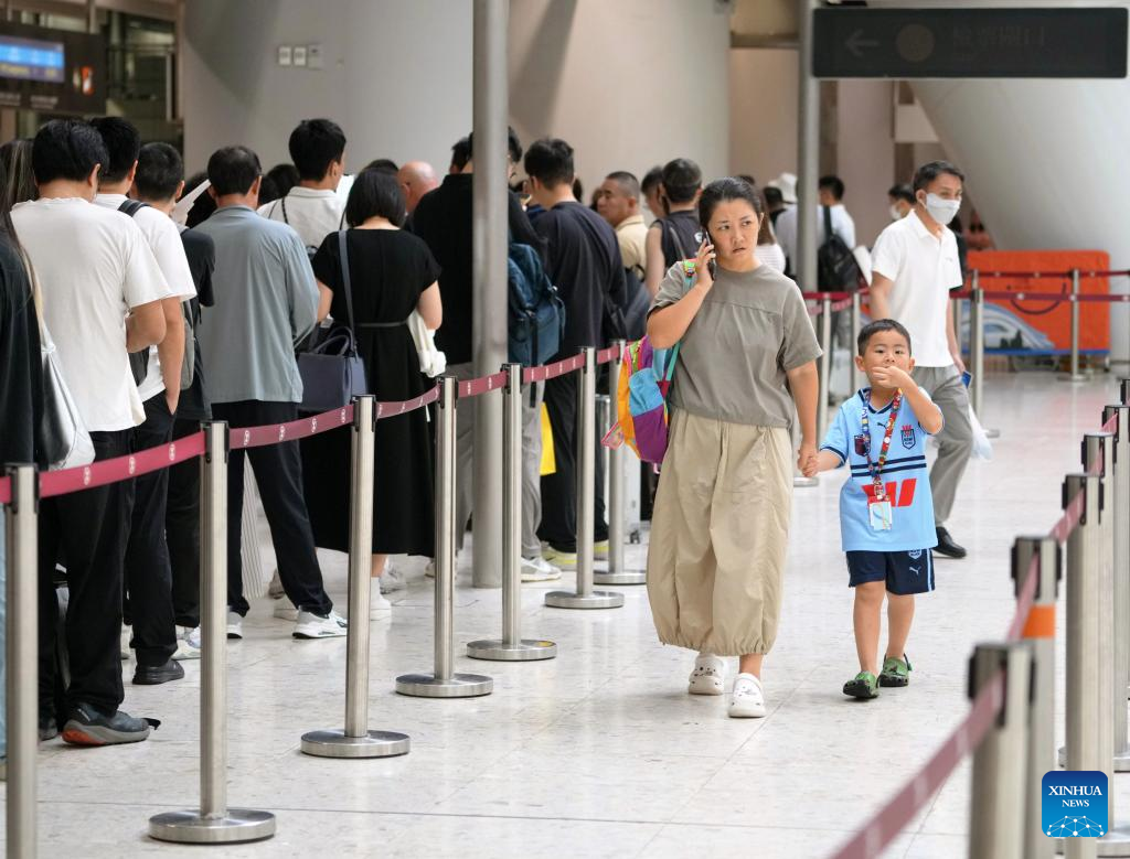 Passengers are pictured at Hong Kong West Kowloon Station in south China's Hong Kong, Sept. 25, 2025. The high-speed railway service between Hong Kong West Kowloon Station and stations in the Chinese mainland gradually resumed on Thursday as typhoon Ragasa edged away. (Xinhua/Xing Guangli)