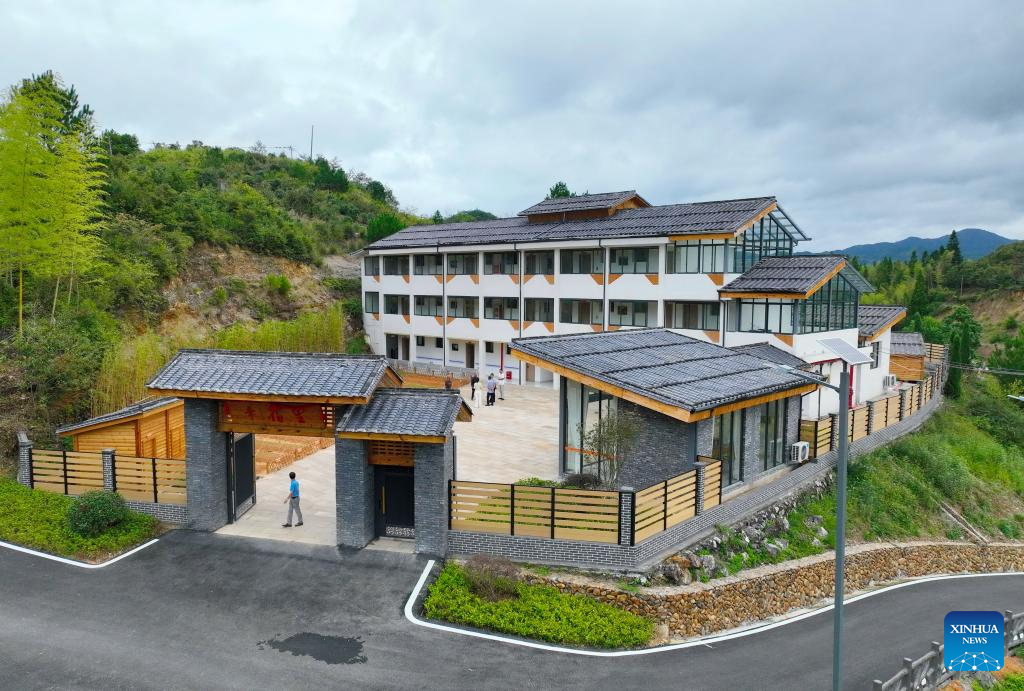 An aerial drone photo taken on Sept. 24, 2025 shows a community elderly care center in Yangyuan Township of Zhenghe County, Nanping City, southeast China's Fujian Province. Zhenghe County in Fujian Province has been actively building a comprehensive elderly care system, exploring the construction of community elderly care centers in villages and towns, which are transformed from idle primary schools, old nursing homes and other idle resources and have promoted elderly care in remote rural areas. (Xinhua/Lin Shanchuan)