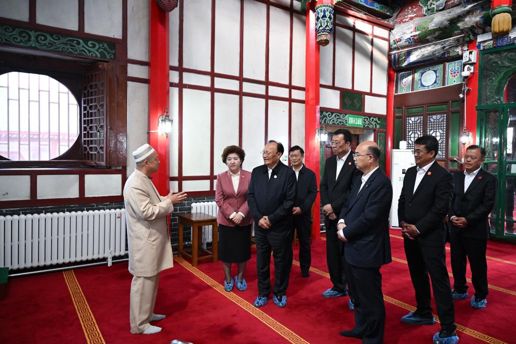 Shohrat Zakir and members of a central delegation visit a mosque in Urumqi, northwest China's Xinjiang Uygur Autonomous Region, Sept. 25, 2025. Entrusted by Xi Jinping, general secretary of the Communist Party of China Central Committee, members of a central delegation on Thursday visited local officials and residents in multiple areas of northwest China's Xinjiang Uygur Autonomous Region. (Xinhua/Xin Yuewei)