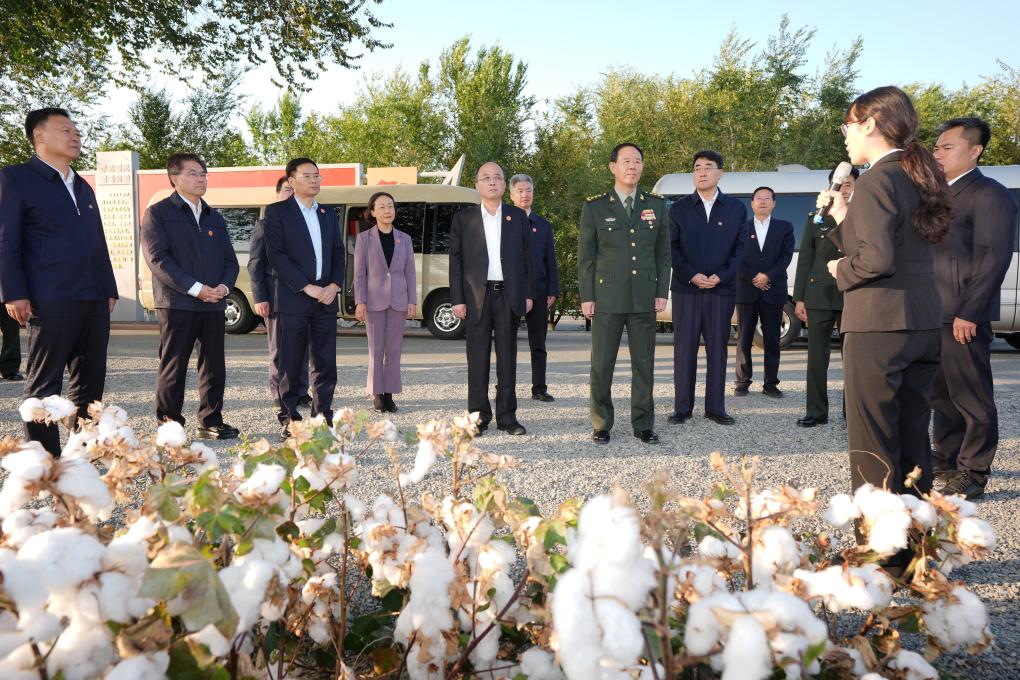 Wang Huning, a member of the Standing Committee of the Political Bureau of the Communist Party of China Central Committee, chairman of the National Committee of the Chinese People's Political Consultative Conference, and head of the central delegation, led a group of delegation members to the XPCC-administered cities of Tiemenguan and Beitun.