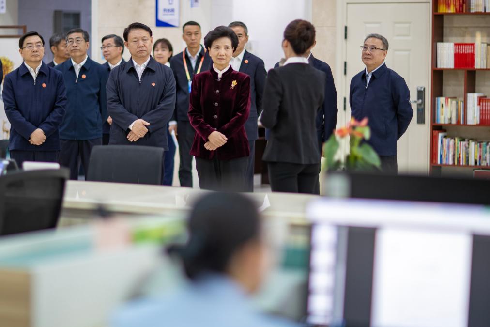 Shen Yiqin and members of a central delegation visit a culture and sports center in Karamay City, northwest China's Xinjiang Uygur Autonomous Region, Sept. 26, 2025. Entrusted by Xi Jinping, general secretary of the Communist Party of China Central Committee, members of a central delegation on Friday continued to visit local officials and residents in multiple areas of northwest China's Xinjiang Uygur Autonomous Region and the Xinjiang Production and Construction Corps (XPCC). (Xinhua/Jiang Fan)