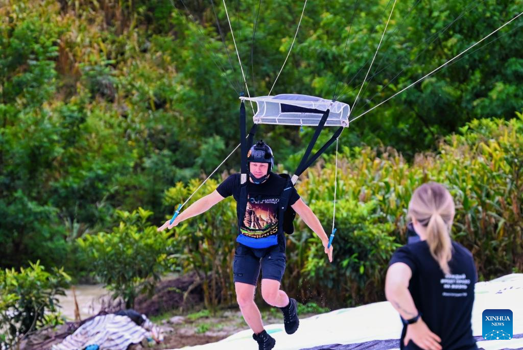 Russian jumper Aleksandr Dobychin participates in the 2025 International High Bridge Extreme Sports Invitational Tournament in Anshun City, southwest China's Guizhou Province, Sept. 26, 2025. (Xinhua)