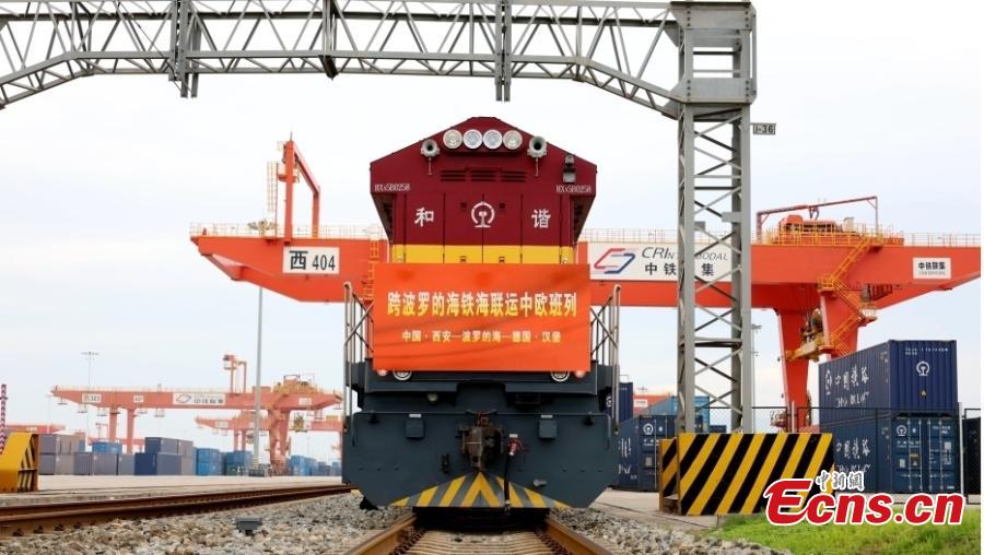 China-Europe freight train X8469, loaded with auto parts, daily consumer goods, and other cargo, departed from Xi'an International Port Station on Friday, heading west to Hamburg, Germany. This marked the successful launch of the first China-Europe freight train using a rail-sea intermodal route across the Baltic Sea.