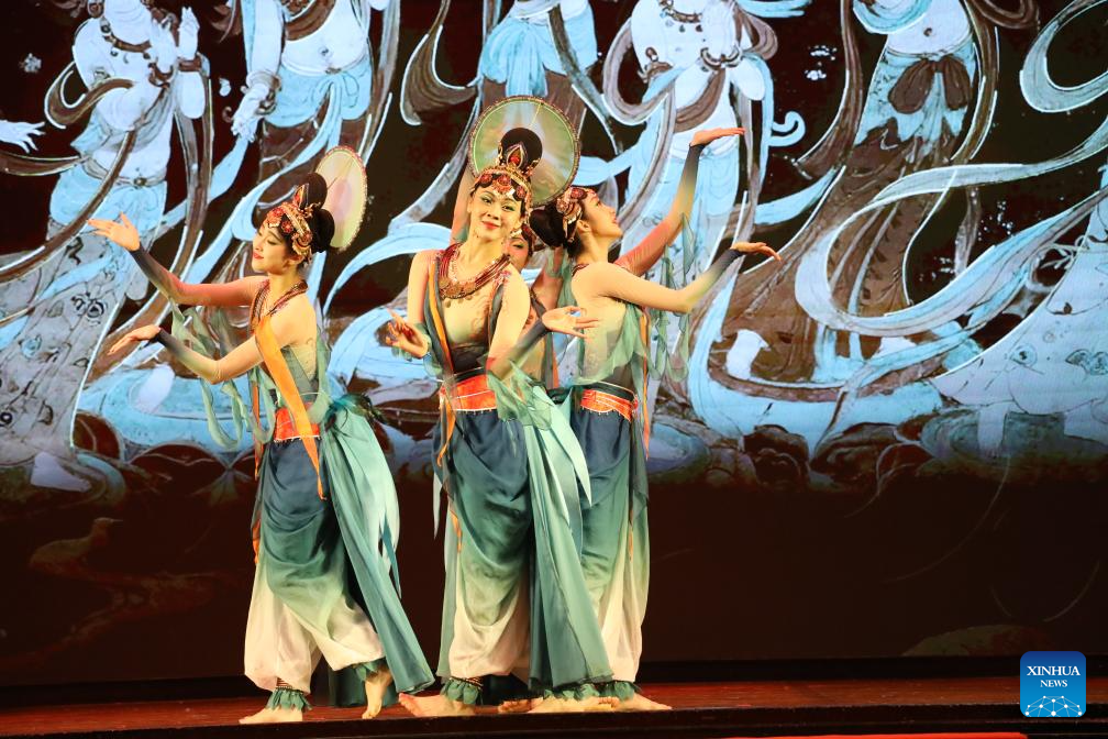 Chinese artists perform at the 2025 China-Cambodia mid-autumn festival friendship gala in Phnom Penh, Cambodia on Sept. 28, 2025. The gala held here on Sunday evening attracted hundreds of revelers. (Photo by Nitola/Xinhua)