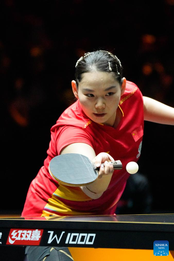 BEIJING, Sept. 29 (Xinhua) -- Women's singles second seed Wang Manyu advanced to the last 32 at the World Table Tennis (WTT) China Smash on Monday after defeating compatriot He Zhuojia in straight games.
