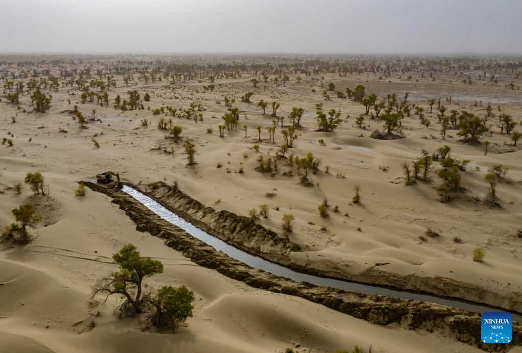 Ecological restoration of Tarim River basin creates "green corridor" in China's Xinjiang