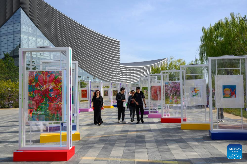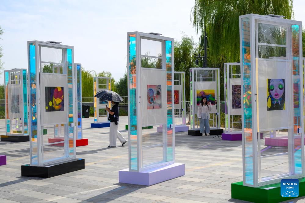 People visit an exhibition of the 2025 Grand Canal Public Art Season in Beijing, capital of China, Oct. 1, 2025. The 2025 Grand Canal Public Art Season kicked off here on Wednesday, enabling the public to experience the charm of art through interactive experiences. (Xinhua/Jin Liangkuai)