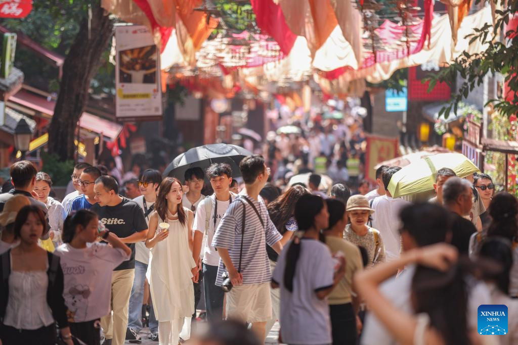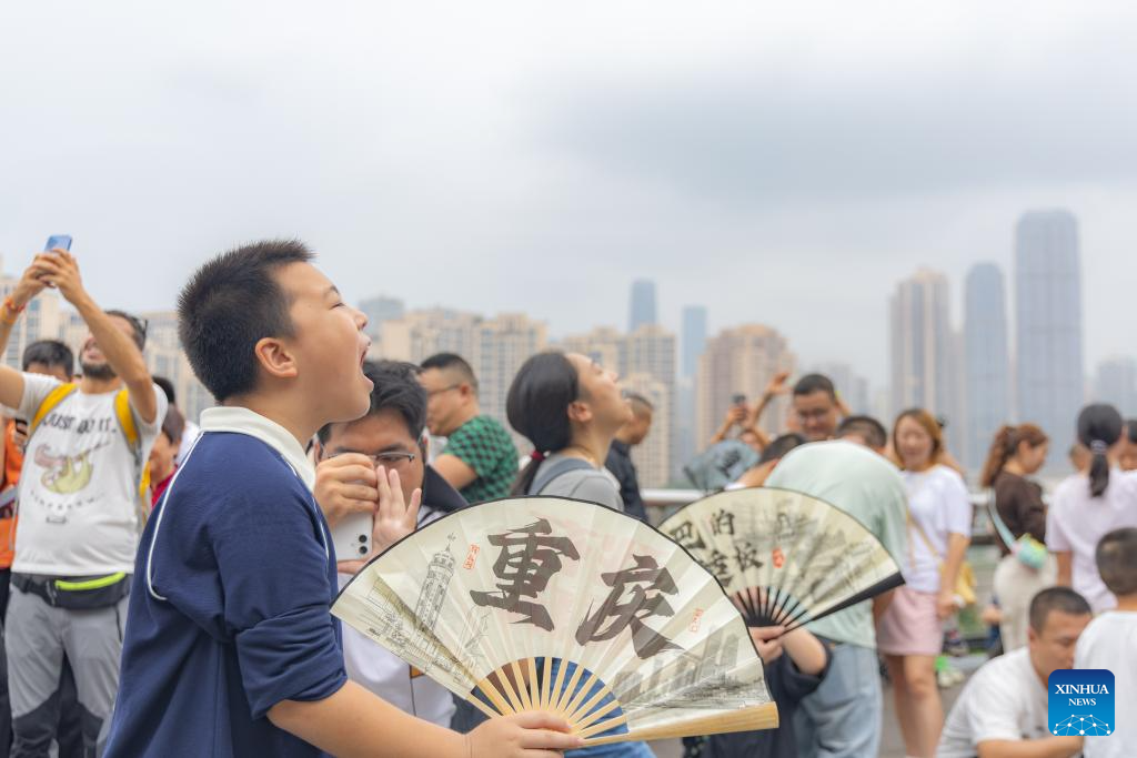 Tourists visit a scenic area in southwest China's Chongqing Municipality, Oct. 1, 2025. (Xinhua/Huang Wei)