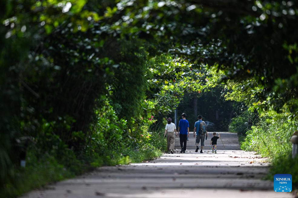 Tourists visit the Haiwei National Wetland Park in Changjiang Li Autonomous County, south China's Hainan Province, Oct. 2, 2025. Following ecological restoration and facility construction, Haiwei National Wetland Park has recently reopened to the public. The park serves as a crucial habitat for migratory birds.