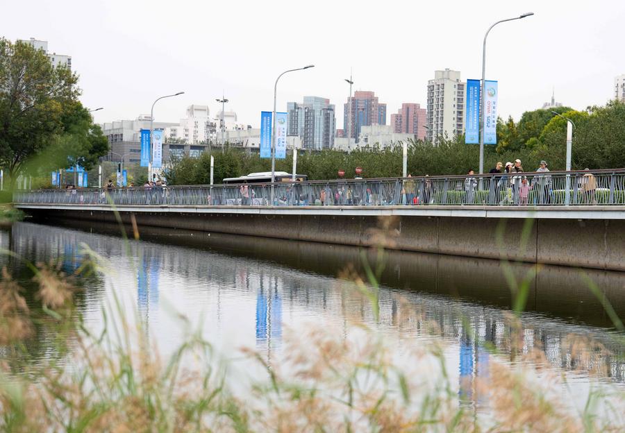 Street banners for the Global Leaders' Meeting on Women are pictured in Beijing, capital of China, on Oct. 11, 2025. (Xinhua/Ju Huanzong)