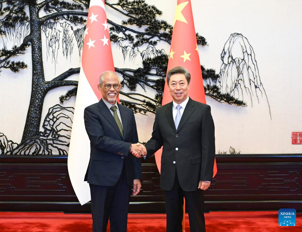 BEIJING, Oct. 16 (Xinhua) -- Chen Wenqing, a senior official of the Communist Party of China (CPC), met with Singaporean Minister for Social and Family Development Masagos Zulkifli on Wednesday in Beijing.